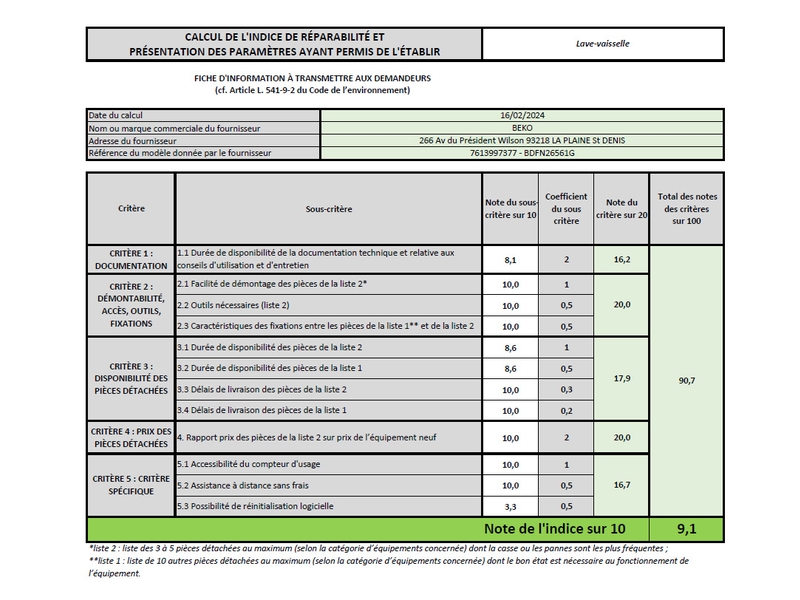 | Indice di riparabilità | 9,1 |